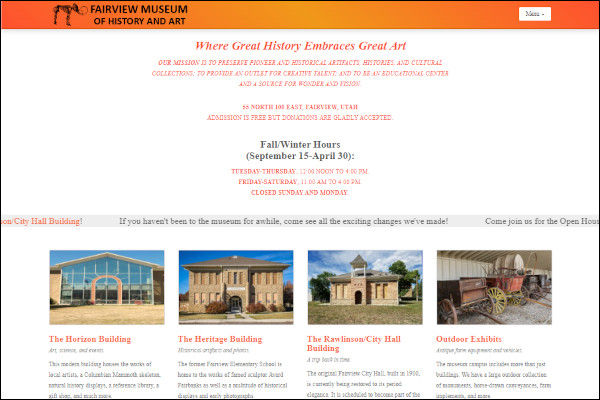 Portfolio Here are a few samples of custom websites I have created for others: Prepism Sanpete Ready.org Fairview Museum Healthy & Ready Anyhoo Social Email Fairview Third Ward